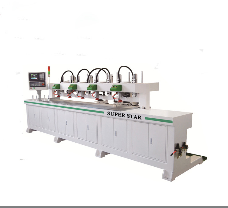 展出機(jī)器:雙機(jī)頭加排鉆包雙工位,眾盛款換刀加排鉆上下料,四工序,側(cè)孔機(jī)