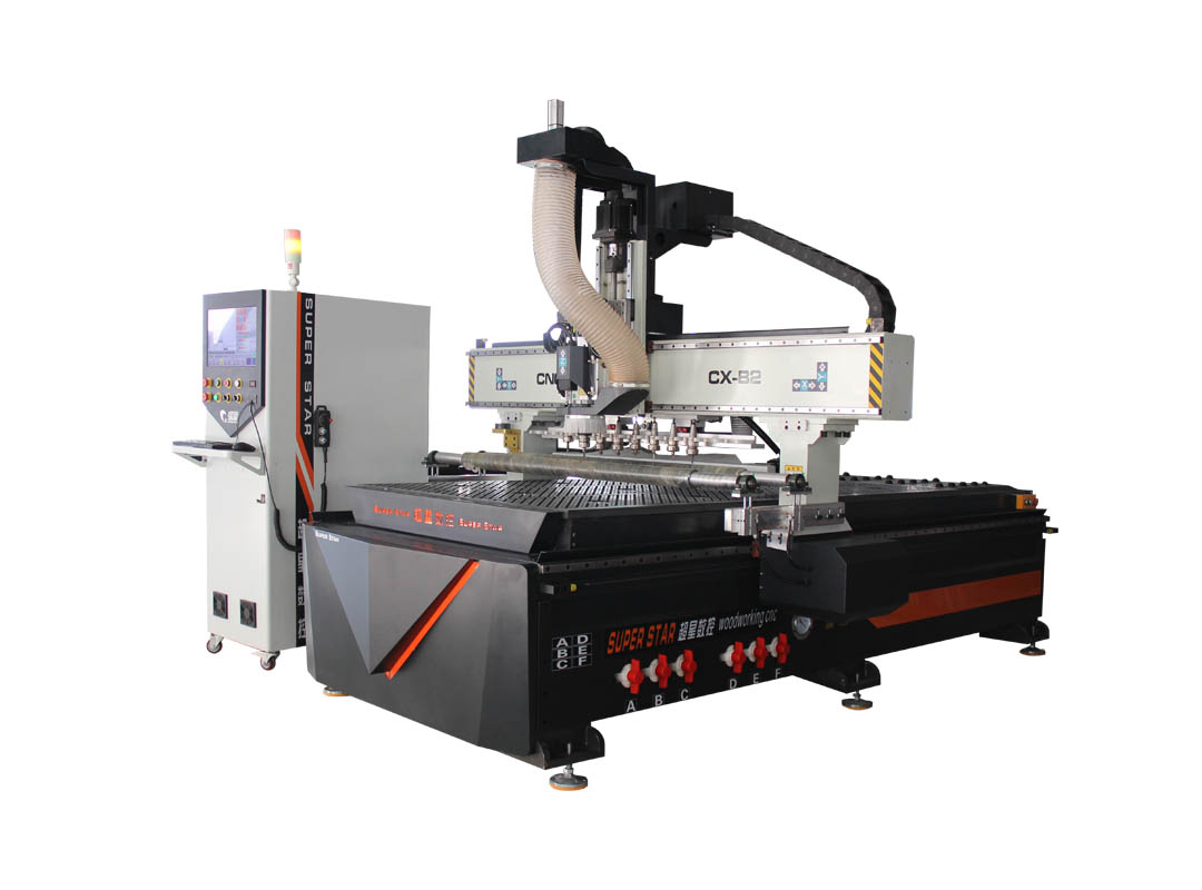 本機型采用直排式跟隨式自動換刀系統(tǒng),不影響進料高度和平臺面積。